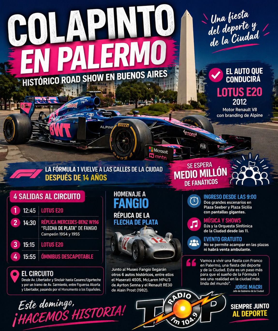 Expectativas por la presentación de Franco Colapinto en Palermo: el auto que conducirá