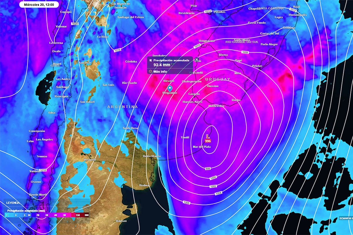 El impacto de la depresión atmosférica “provocará intensas lluvias y nevadas en la cordillera de Los Andes”, indica el informe publicado en Meteored.
