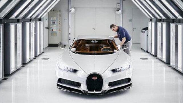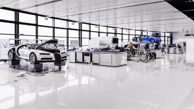 Después, comienza el largo cción del Bugatti Veyron y que cuenta con una superficie de más de 1.000 metros cuadrados con un suelo tan blanco y limpio que, según la compañía, "se puede comer caviar sobre él".